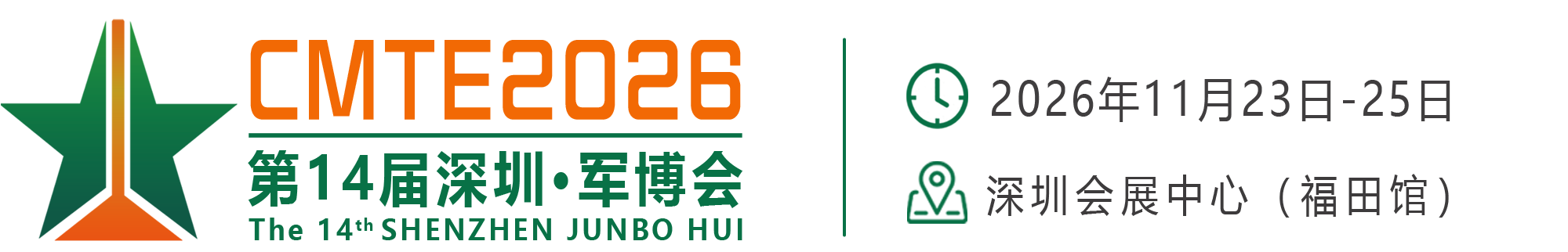 为贯彻落实党中央提出的“坚持科学发展观,提高自主创新能力”的指示精神,促进军民融合加快国防和军队现代化发展。在国家相关部委及主管部门的大力支持下,由中国和平利用军工技术协会、全国工商联科技装备业商会、深圳国防科技工业协会主办,麒麟软件有限公司、贵州航天电器股份有限公司赞助,中国电子科技集团、中国航天科技集团、中国航天科工集团、中国航空工业集团、中国船舶集团、中国航空发动机集团、中国电子信息产业集团协办,由深圳企发展览有限公司承办的“第十四届中国(深圳)军民两用科技装备博览会(简称“深圳·军博会”)”将于2026年11月23日-25日在中国.深圳会展中心(福田)隆重举办。