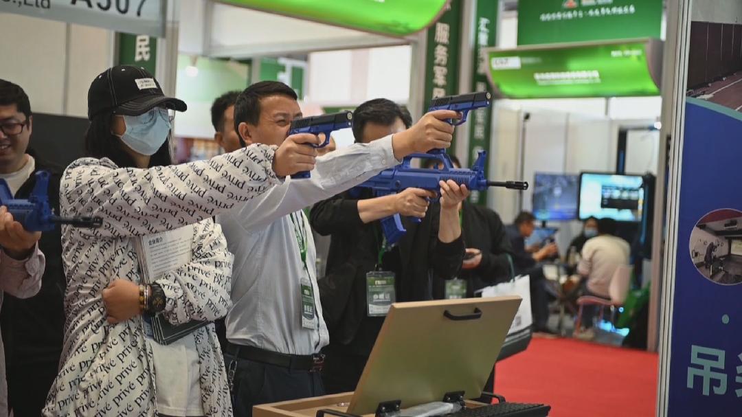 打靶何须去靶场,在国际会展中心三号馆,这家展示虚拟打靶设备的装备技术公司,成为了最旺的展台之一。参展商介绍,从枪械手感到枪击的声音都比较还原。